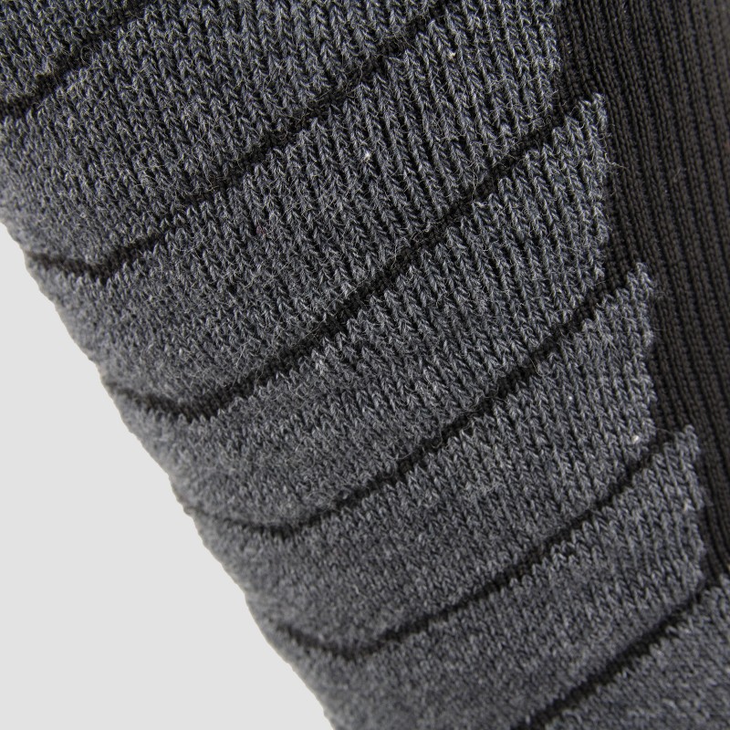 Punti di rinforzo - I punti di rinforzo nelle calze tecniche si collocano in aree strategiche progettate per assorbire l’usura del capo nelle zone soggette a maggior sfregamento o pressione. Nel dettaglio si tratta di punta, zona plantare, calcagno, tendine calcaneale e tibia. Questo conferisce al prodotto una durata maggiore, sfavorendo deterioramenti dovuti al contatto con le calzature. Oltre a prolungarne la vita, i rinforzi offrono protezione e ammortizzazione, aiutando a ripartire la pressione e a mitigare i fastidi. Il risultato è una calza che favorisce comfort e performance anche dopo molte ore di utilizzo.