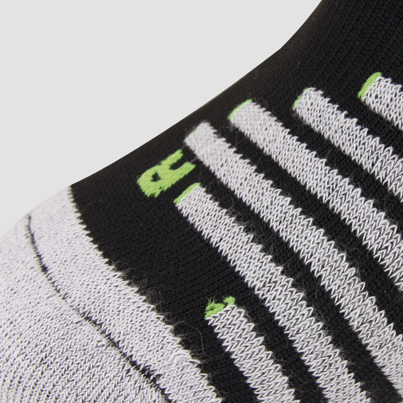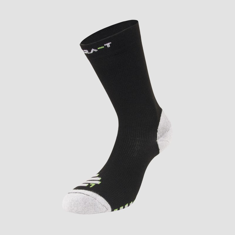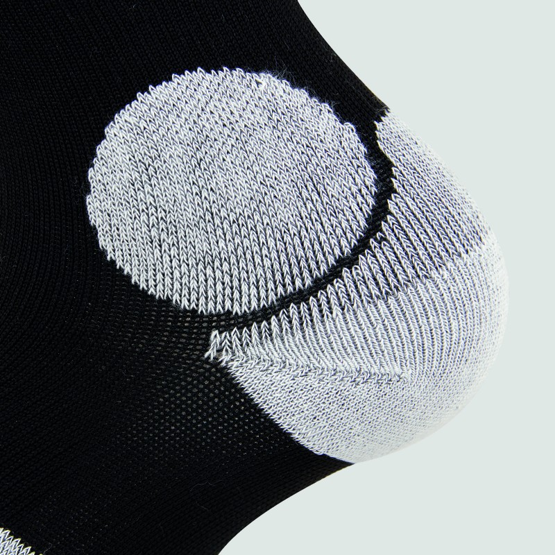 Punti di rinforzo - I punti di rinforzo nelle calze tecniche si collocano in aree strategiche progettate per assorbire l’usura del capo nelle zone soggette a maggior sfregamento o pressione. Nel dettaglio si tratta di punta, tallone e avampiede. Questo conferisce al prodotto una durata maggiore, sfavorendo deterioramenti dovuti al contatto con le calzature. Oltre a prolungarne la vita, i rinforzi offrono protezione e aiutando a ripartire la pressione e a mitigare i fastidi. Il risultato è una calza che favorisce comfort e performance anche dopo molte ore di utilizzo.