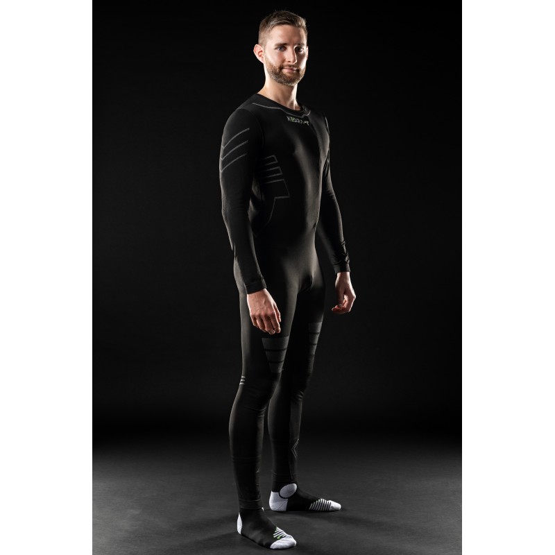 Progettato per offrire massime prestazioni e comfort prolungato, questo capo intimo tecnico unisce innovazione e funzionalità in un design ergonomico, sottile e altamente traspirante. La tecnologia seamless offre una struttura compatta e uniforme, priva di cuciture nelle zone più delicate e con punti di assemblaggio strategici che evitano attriti e pressioni durante il movimento. La vestibilità anatomica segue le linee del corpo, favorendo aderenza, stabilità e totale libertà nei gesti. La fibra Dryarn®, leggera e termoregolante, agevola la gestione del calore corporeo e dell’umidità, mantenendo la pelle asciutta e la temperatura costante in diverse condizioni. I punti di rinforzo posizionati su spalle, gomiti, interno coscia e ginocchia proteggono le zone più sollecitate, aumentando la resistenza all’usura del capo e offrendo maggiore supporto nei momenti di maggiore pressione. Il tessuto è naturalmente batteriostatico: limita la proliferazione dei batteri e aiuta a prevenire la formazione di cattivi odori, offrendo una sensazione di freschezza anche dopo un uso prolungato. Dotato di cerniera piatta a scomparsa con apertura diagonale per una vestizione agevolata, e di aree elasticizzate su polsi e caviglie per una migliore aderenza, questo sottotuta rappresenta la sintesi ottimale tra comfort, performance e durabilità. Ideale per chi cerca un intimo tecnico avanzato, pensato per adattarsi come una seconda pelle e accompagnare ogni movimento, in ogni stagione.