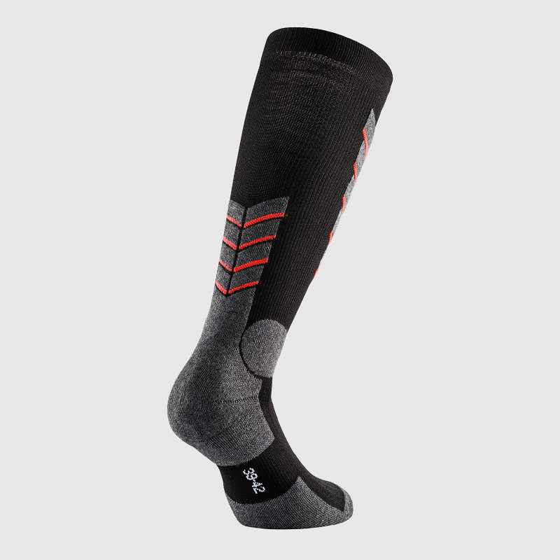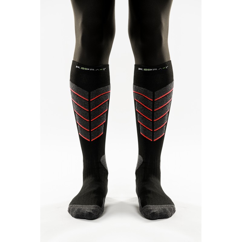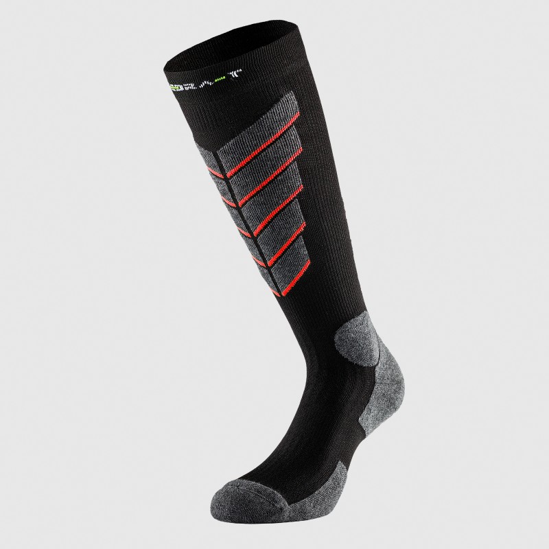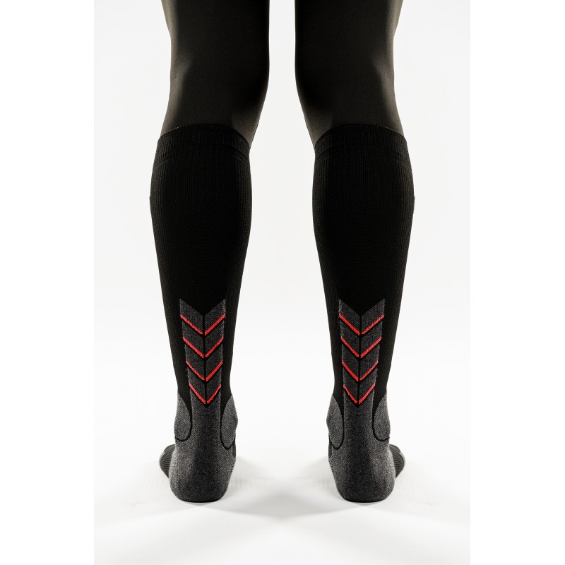 Punti di rinforzo - I punti di rinforzo nelle calze tecniche si collocano in aree strategiche progettate per assorbire l’usura del capo nelle zone soggette a maggior sfregamento o pressione. Nel dettaglio si tratta di punta, zona plantare, calcagno, tendine calcaneale e tibia. Questo conferisce al prodotto una durata maggiore, sfavorendo deterioramenti dovuti al contatto con le calzature. Oltre a prolungarne la vita, i rinforzi offrono protezione e ammortizzazione, aiutando a ripartire la pressione e a mitigare i fastidi. Il risultato è una calza che favorisce comfort e performance anche dopo molte ore di utilizzo.