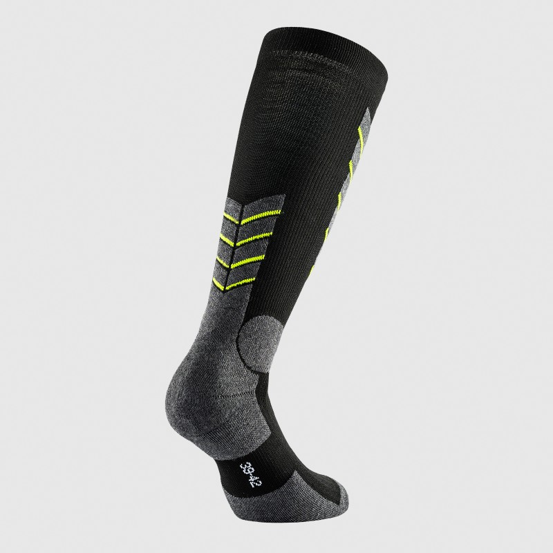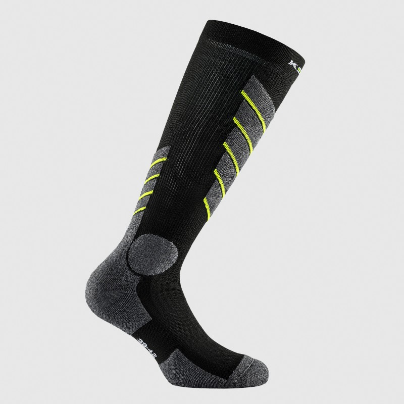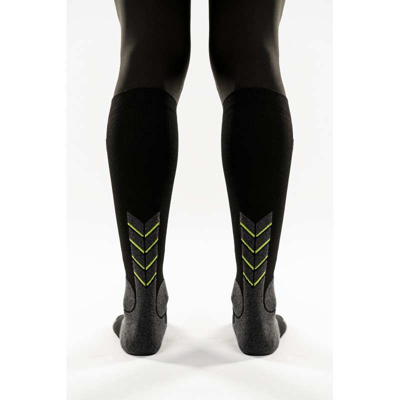 Punti di rinforzo - I punti di rinforzo nelle calze tecniche si collocano in aree strategiche progettate per assorbire l’usura del capo nelle zone soggette a maggior sfregamento o pressione. Nel dettaglio si tratta di punta, zona plantare, calcagno, tendine calcaneale e tibia. Questo conferisce al prodotto una durata maggiore, sfavorendo deterioramenti dovuti al contatto con le calzature. Oltre a prolungarne la vita, i rinforzi offrono protezione e ammortizzazione, aiutando a ripartire la pressione e a mitigare i fastidi. Il risultato è una calza che favorisce comfort e performance anche dopo molte ore di utilizzo.