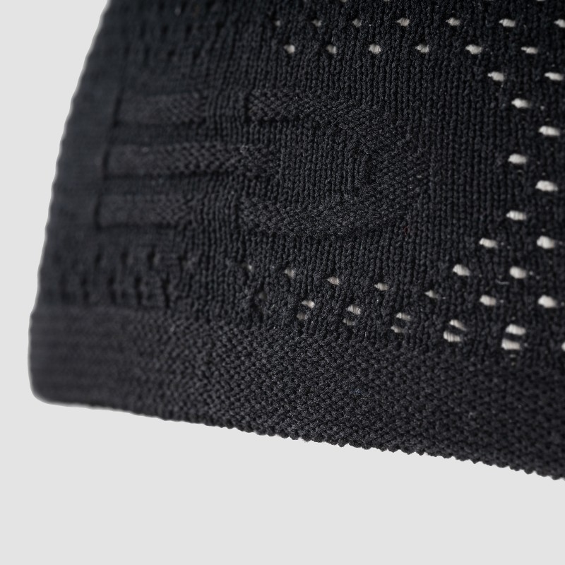 Totalmente senza cuciture - Questo design assicura una vestibilità fluida e senza potenziali punti di sfregamento, garantendo un comfort superiore anche durante l’utilizzo prolungato. L’assenza di cuciture consente al tessuto di adattarsi perfettamente alla forma della testa, seguendo i movimenti in modo naturale e uniforme. Inoltre, la mancanza di cuciture riduce l’ingombro complessivo del capo, contribuendo ad una sensazione di leggerezza e di libertà di movimento.